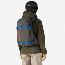 Mochila de esquí Patagonia SnowDrifter 30L. Diseñada para que disfrutes de un día completo esquiando. Esta versátil mochila tiene un compartimento dedicado a las herramientas de seguridad en la nieve y un acceso en el panel trasero que te permite acceder fácilmente a tu equipo mientras la mochila está cargada. Fabricada con tejidos 100% reciclados. 1191g