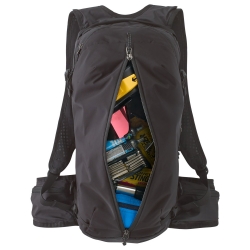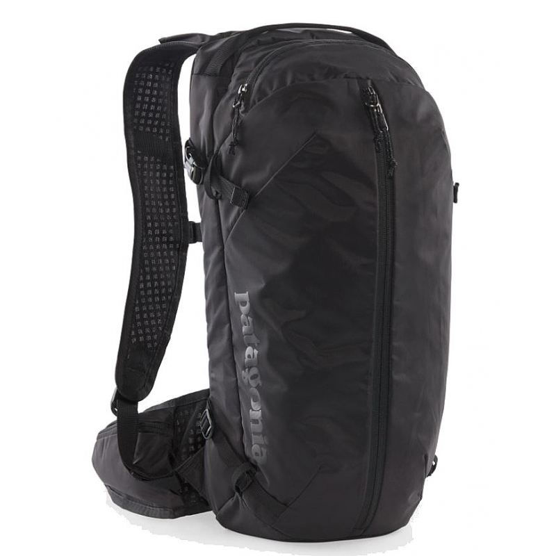 Mochila para ciclismo de Patagonia. Fabricada con nylon 100% reciclado, sin PFC y con revestimiento DWR repelente del agua. Panel trasero fabricado en maya muy transpirable. Incluye depósito Hydrapack de 2 litros. 676g