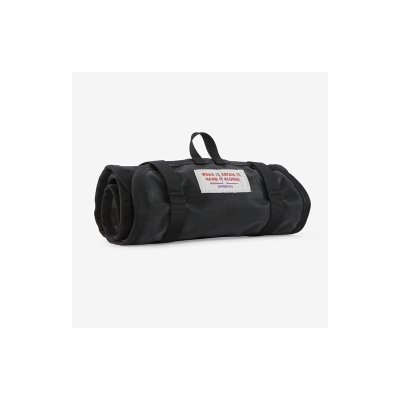 Estuche para reparaciones de Patagonia. Dispone de enganches y bolsas para poder llevar todo lo tipo de utensilios de reparación. Incluye aguja e hilo. Tiene un enlace qr para ver tutoriales de reparación. Permite múltiples variaciones a la hora de colocarlo en tu equipo de viaje. Está fabricado en poliéster 100% reciclado. Dispone del sello Fair Trade por ser una prenda de comercio justo.