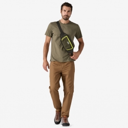 Riñonera Patagonia fabricada en algodón orgánico y poliéster reciclado. Dimensiones: 26,7 x 16 x 9 cm. Dispone del sello Fair Trade por ser una prenda de comercio justo.