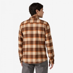 Camisa de Patagonia para trekking o viajes. Fabicada en 96% poliéster reciclado y un 4% elastano.. Es transpirable, caliente y altamente resistente. Dispone de varios bolsillos y de una gamuza limpiagafas en el dobladillo.