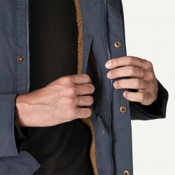 Abrigo clásico de Patagonia, inspirados en los abrigos para expediciones de los años 60. Fabricado en nylon Netplus 100% reciclado proveniente de redes de pesca. El interior está cubierto de forro polar de poliéster 100% reciclado y las mangas están rellenas con Thermogreen, un material reciclado altamente calorífico. Todo el exterior dispone de tratamiento repente al agua DWR libre de contaminantes. Tanto mangas como bajos son ajustables y a capucha se puede quitar. Dispone de los sellos Fair Trade por ser una prenda de comercio justo y Bluesign por su fabricación 100% ecológica.