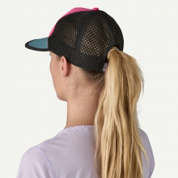 Gorra de running de Patagonia. Fabricada con nylon NetPlus obtenido de redes de pesca recicladas, está gorra es transpirable y ligera. La maya está fabricada con poliéster 100% reciclado. Y dispone de un tratamiento antibacteriano HeiQ para evitar malos olores. Tiene el sello Fair Tarde por ser una prenda de comercio justo.